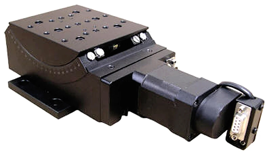 Optimal Engineering Systems, Inc. (OES) has added four high-resolution, low-profile goniometers to their expanding catalog of high precision positioning stages. This newly released, AK120-45 Goniometer Series features precision ground worm gears with a 296:1 ratio and pre-loaded cross roller guides, and +/- 45 degrees of travel with 10kg of load. The very high resolution of 0.0006 degrees (2.16 Arcsec.) is realized when using the standard Two-Phase Stepper Motor driven by a 10 micro-steps per step micro-stepping driver or with the Servo Motor options and Quadrature Optical Encoders.