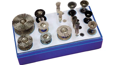 The lineup of wheel, cup, and end configurations includes stem-mounted miniature brushes.