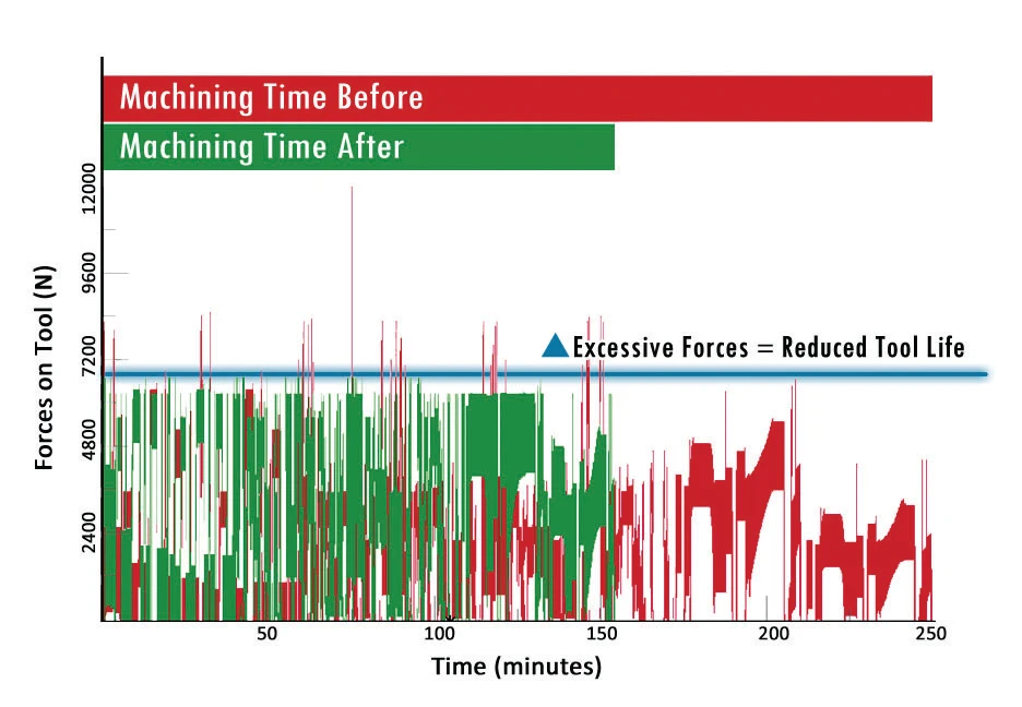 »» Analyzes each toolpath line, calculating forces, spindle power, temperature, etc.