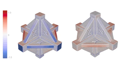 Recognizing that all 3D printed parts shrink or warp during the printing process, Riven is introducing a new re-scaling tool that makes it easy to print parts more accurately. Riven’s software automatically computes re-scaling factors as compared to the original CAD. All processes, from FDM through metal 3D printing, can be made more accurate with quick 3D re-scaling. Unlike checking limited dimensions with calipers or a CMM, Riven uses a full part capture to compute an optimal solution based on the entire part shape to produce a more accurate result.
