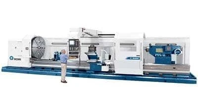 Romi’s line of heavy duty CNC lathes feature net weights ranging from approximately 39,700 lb (18,000kg) to 134,500 lb (61,000kg), maximum weight between centers from a generous 33,100 lb (15,000kg) to 110,200 lb (50,000kg), and maximum torque from 12,429N•m to 44,200N•m.