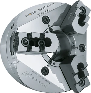 The ROTA NCK-plus is available for all CNC lathes in the sizes 165 (6”), 210 (8”), 250 (10”), and 315 (12”), with clamping forces from 57 kN (12.814 lbf) to 144 kN (32.392 lbf). It is suitable for maximum speeds of 6,000 rpm and combines jaw strokes ranging from 2.75 (0.108”) – 5.30 mm (0.208”) per jaw.