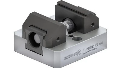 Speed is the key to success – especially when it comes to handling of parts to be clamped. Flexibility is also a factor that must not be neglected. The new SCHUNK KONTEC KSC mini small parts vise addresses both with easy handling and high clamping force. Its jaw quick-change system enables users to convert the compact vise efficiently and without tools in no time at all. Users can exchange the jaws by simply clicking in and out.