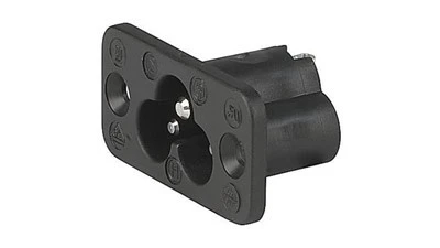 Schurter offers a full range of IEC appliance inlets and outlets, including a smaller C8 version without ground terminal for appliances commonly used in homes.