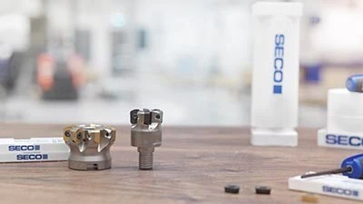 Troy, Michigan – To eliminate long face milling cycle times and ensure process security, Seco Tools has introduced new larger LP09 inserts for the company's HighFeed 2 cutter bodies. The new inserts are designed for high-feed milling operations including face, helical interpolation, slotting, side milling, pocketing, and plunging in challenging workpieces.