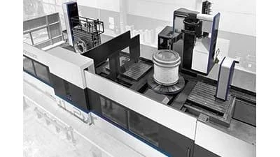 The machine incorporates two independent workstations, each including a Soraluce designed and manufactured table; one for milling operations with a traveling rotary table of 118” x 98” plus 78” W-axis, the second for milling and turning operations with a traveling rotary turning table of 118” plus 78” W-axis, both tables with load capacity of up to 88,180 lb.