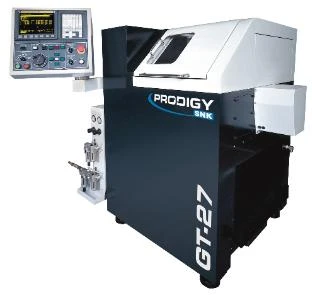 SNK Prodigy has combined the best of both American and Japanese engineering and manufacturing to produce the new Prodigy GT-27 Single Spindle Gang Tool Lathe. The result is an American-made small part gang tool lathe that delivers optimum accuracy and cycle times.