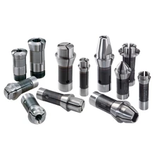 Hardinge stocks headstock collets, pickoff collets and guide bushings in many styles and sizes. Their standard round guide bushings are carbide-lined to keep the stock clean and unmarked. Hardened steel or Meehanite-lined bushings can be made for certain stock that is not compatible with carbide. Standard extended-nose headstock and emergency collets feature added nose length (straight or tapered) for doing pickoff work or to compensate for tooling interference. Emergency collets are handy to have in your tool drawer and can be machined to the desired bore size right in your shop to accommodate small runs or get you by in a pinch until your desired size collet arrives.