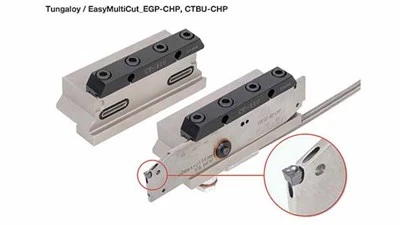 Iwaki, Japan – Tungaloy Corp. has expanded EasyMultiCut: the EGP-CHP blade and the CTBU-CHP block, both of which have a coolant hole for high-pressure internal coolant supply.