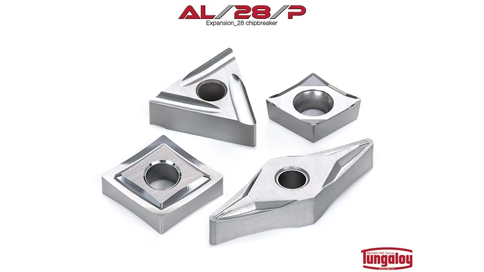 Tungaloy enhanced its uncoated cemented carbide insert line for non-ferrous applications by adding 13 new inserts with the -28 chipbreaker.