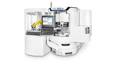 For unattended, lights-out operations, the Profile Line comes equipped with an integrated 6-axis Fanuc robot that can accommodate customer-specific pallets. A high-resolution CCD-HD vision system is available for loading grid pallets using magnetic grippers. Cleaning, re-clamping, and centering stations can also be integrated.