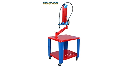 The VT/VTS Articulated Tapping System features a high torque pneumatic spindle mounted on a balanced, articulated arm with a reach of 75" and a multi-directional magnetic positioning head. The VT/VTS system is capable of tapping fine holes in M3 - M26 steel. It was designed to run off standard shop air, portable compressor, or even an air cylinder (limited run-time).