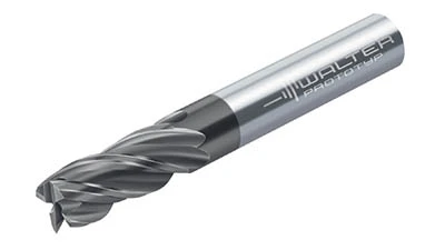 A tough carbide substrate (WK40RC) is used to provide superior machining reliability. In addition, process reliability is boosted by the mills’ low susceptibility to vibration by incorporating asymmetrical helix angles between 35° and 38°. The tools’ coating, a proprietary recipe of titanium-aluminum-nitride designed and produced by Walter, increases tool service life and minimizes build-up on the cutting edge.
