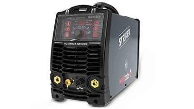 Weighing 24.7 lb, the TIG Striker 200 machine is a small, compact, dual voltage (115V or 230V) inverter unit with digital readouts that automatically identifies the power grid voltage and operates accordingly.